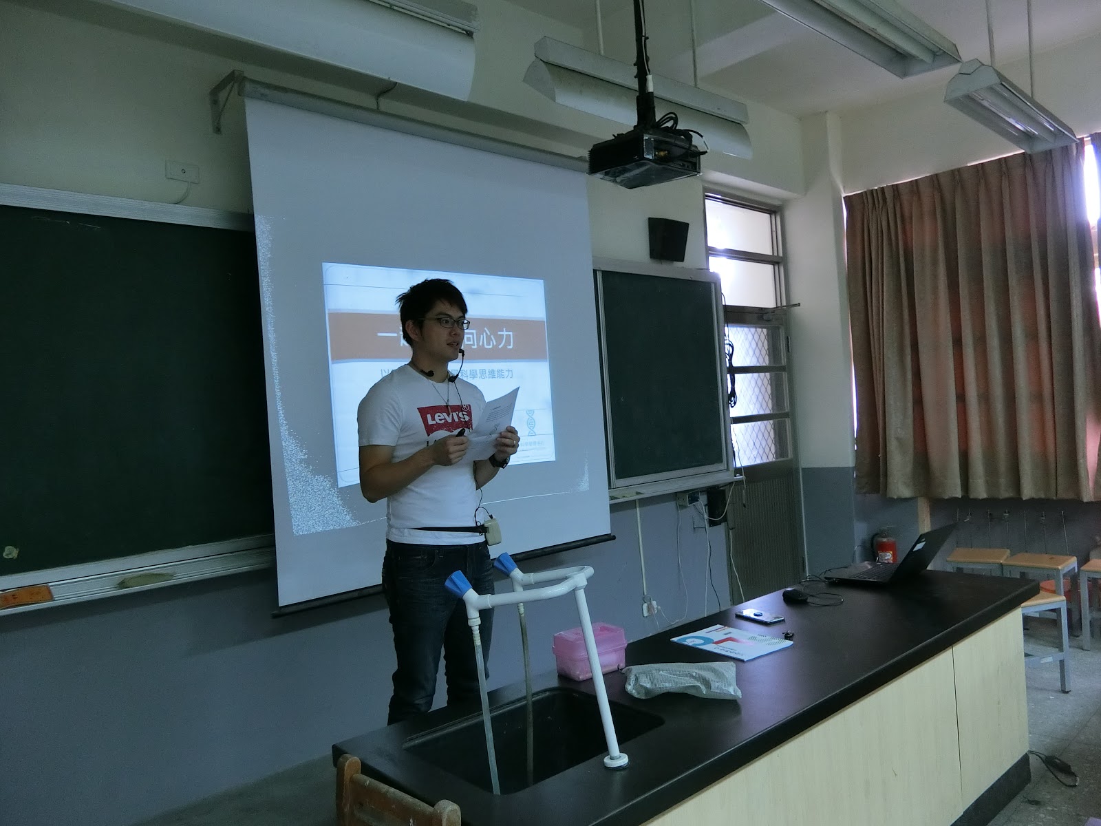 本校向「勞動部中彰投分署青年職涯發展中心創客基地」申請了「魚菜共生」的課程。課程開始時由創客基地的聯絡人廖先生,先讓學生了解勞動部是什麼單位?青年職涯中心有什麼服務?接下來會介紹什麼是創客「Maker」。最後會進行有獎徵答,送給學生3D列印的小恐龍。